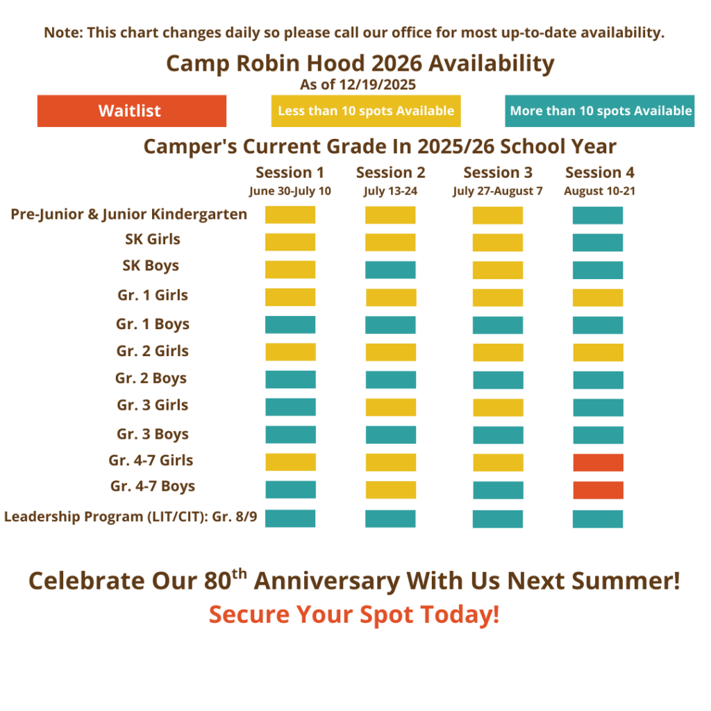 - By Cheque: Made payable to Camp Robin Hood